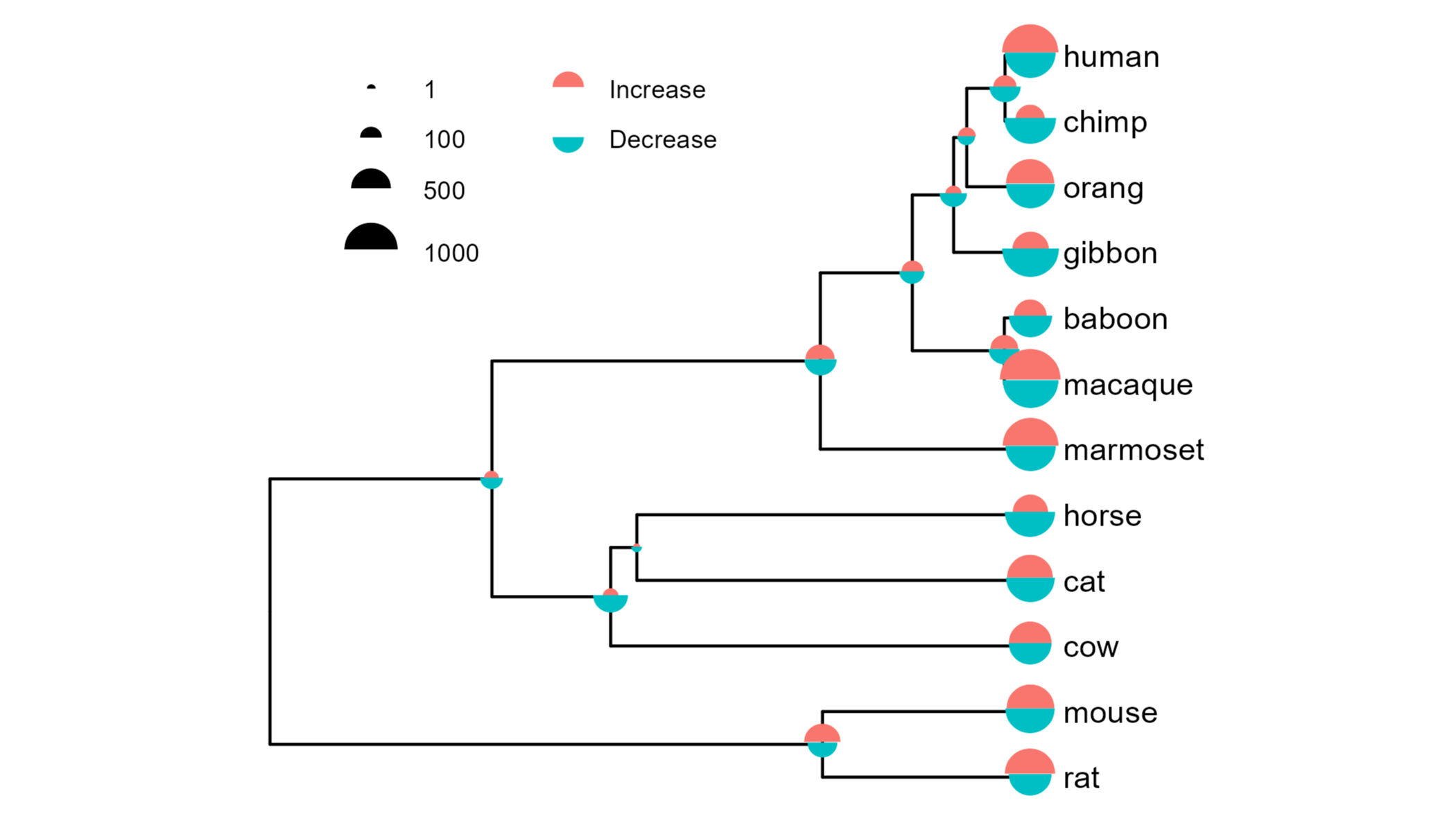 For instance, modelling the gains and losses of genes across phylogenetic trees is frequently performed as part of evolutionary analyses using software such as CAFE5. How best to visualise these changes across the tree is not necessarily obvious.